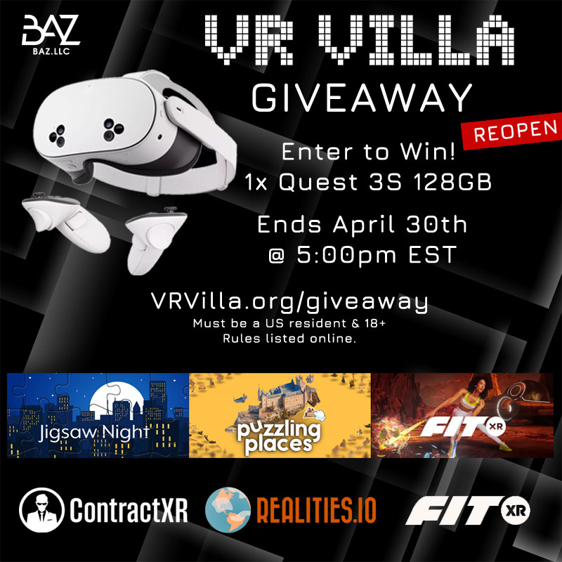 Enter to win a SECOND VR headset! Multiple ways to enter! Thanks to Jigsaw Night, Puzzling Places and FitXR for supporting VR Villa!